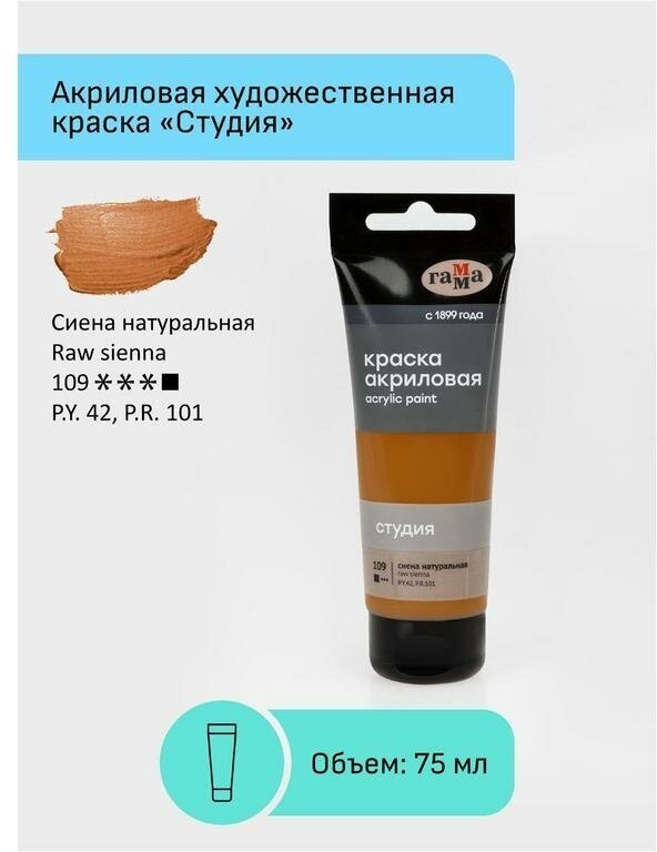 Краска акриловая Гамма "Студия", туба, 75 мл, №109 сиена натуральная