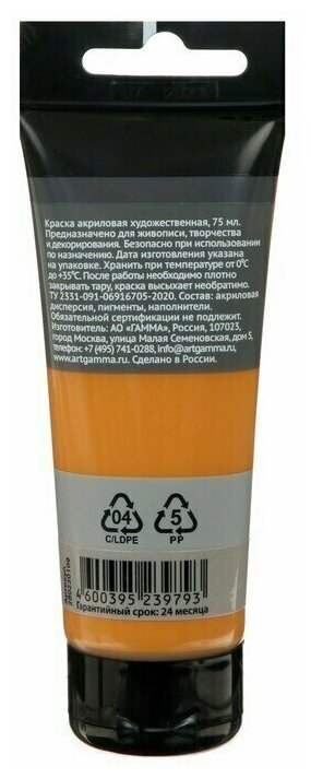 Краска акриловая художественная Гамма "Студия", пластиковая туба, 75мл, сиена натуральная, 3шт. информация: