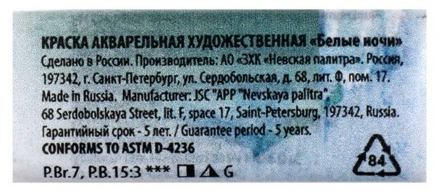 Завод художественных красок «Невская палитра» Акварель художественная "Белые ночи", 2.5 мл, лазурная мгла, в кювете