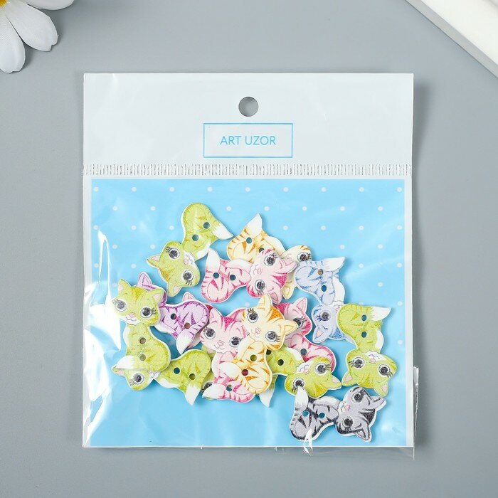 10 цен на Арт Узор Пуговицы дерево для творчества 2 прокола "Кошка" набор 15 шт 1,6х2,6 см микс