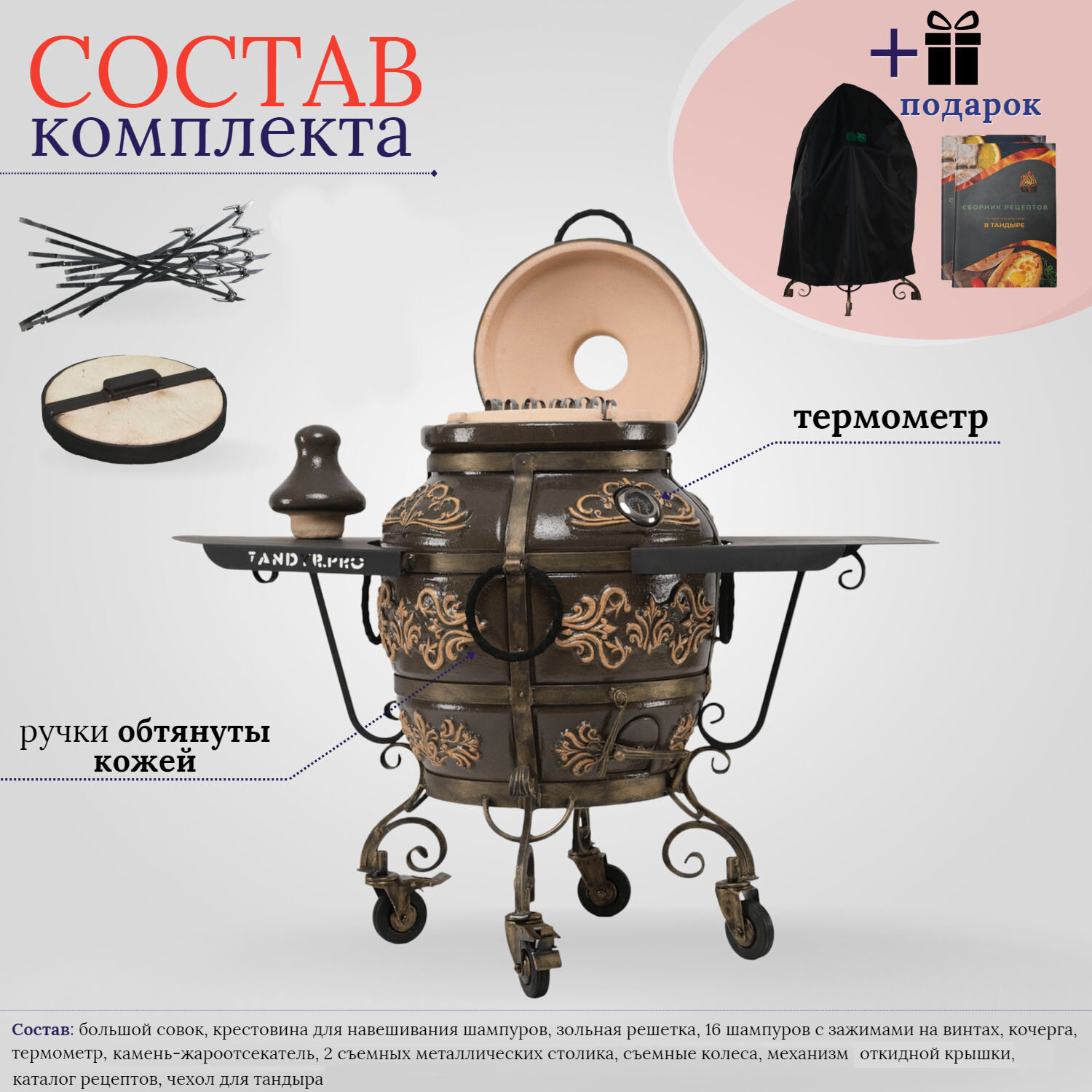 Тандыр Тамерлан с металлическим столиком, чехол и сборник рецептов в подарок!