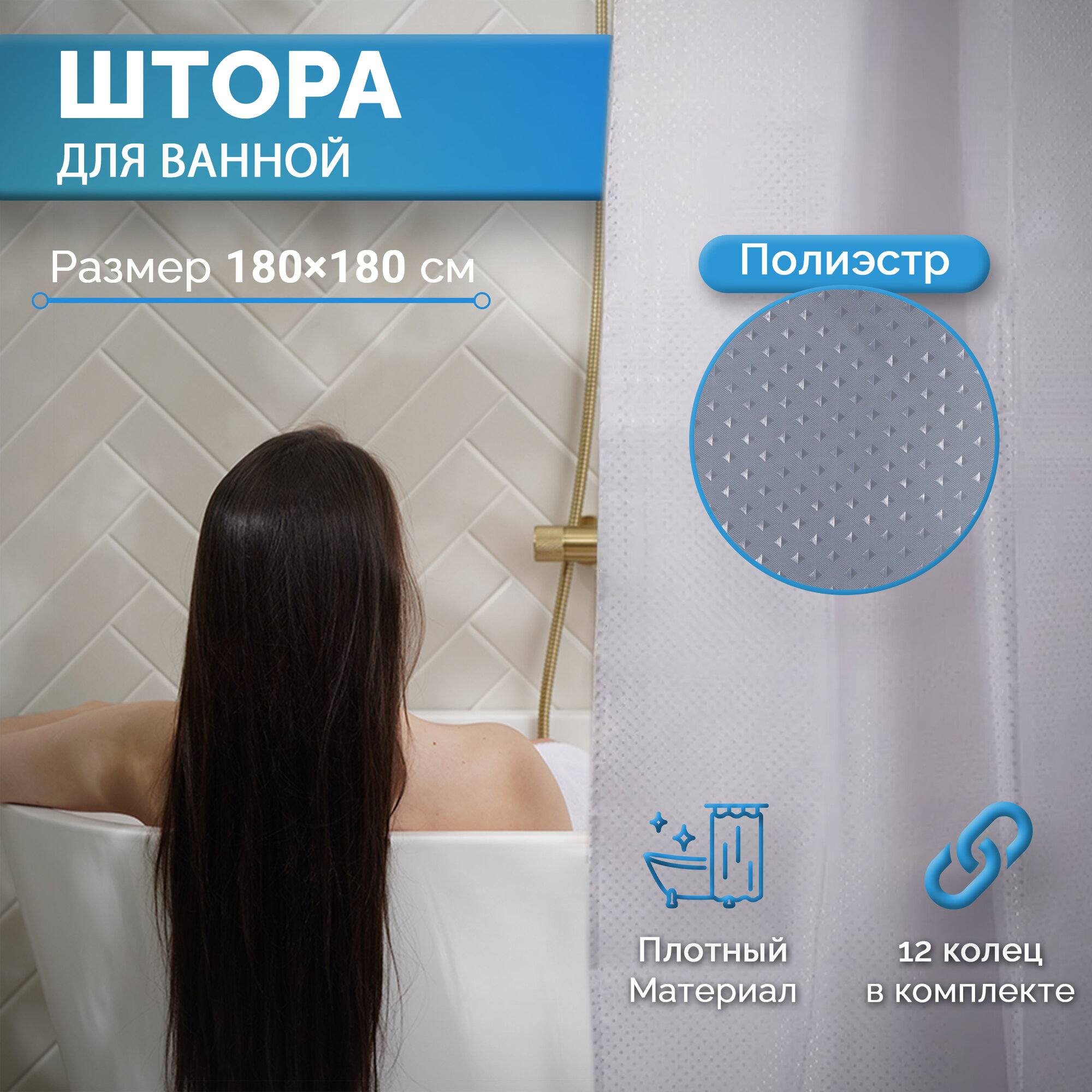 Штора для ванны Доляна «Орион», 180×180 см, полиэстер, цвет серебряный информация: