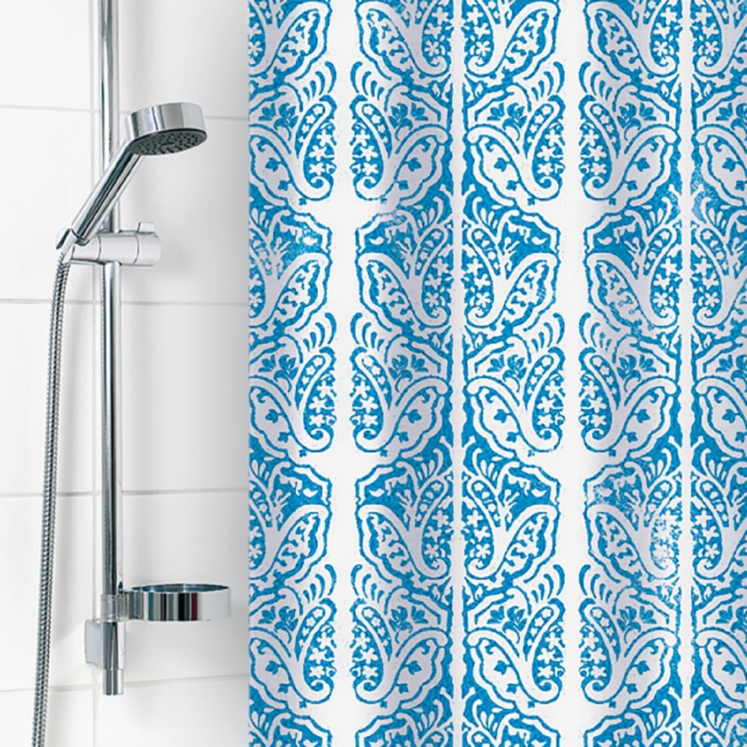 10 цен на Штора для ванной комнаты VILINA водонепроницаемая с рисунком занавес с кольцами 180х180 см голубая