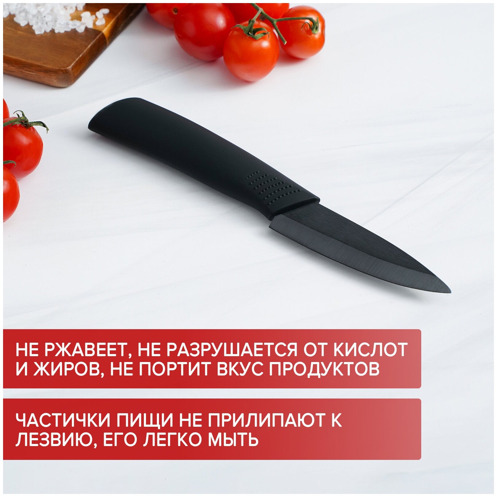 Нож кухонный керамический Black, лезвие 7.5 см, ручка soft-touch, цвет чёрный 936 ₽