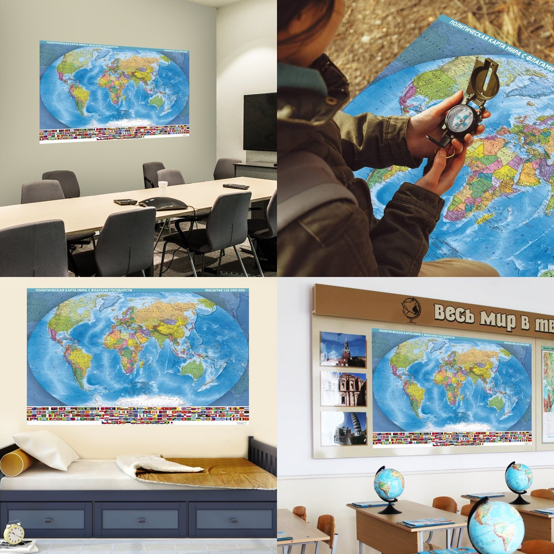 10 цен на Карта Мира Настенная Ламинированная с Флагами. 130х80 см.
