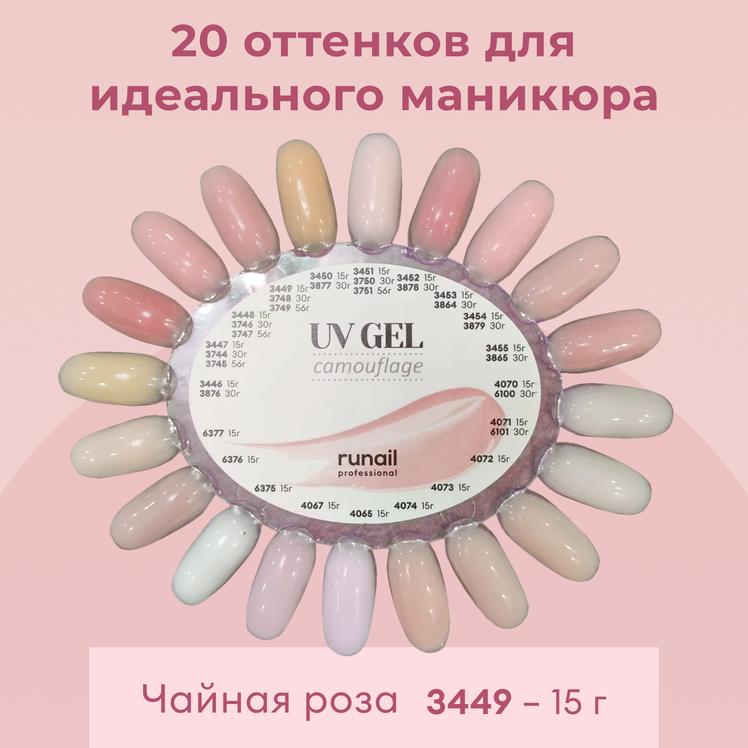 Отзывы на RuNail Professional / Камуфлирующий однофазный УФ-гель лак для наращивания ногтей цвет: Чайная роза, 15 г № 3449