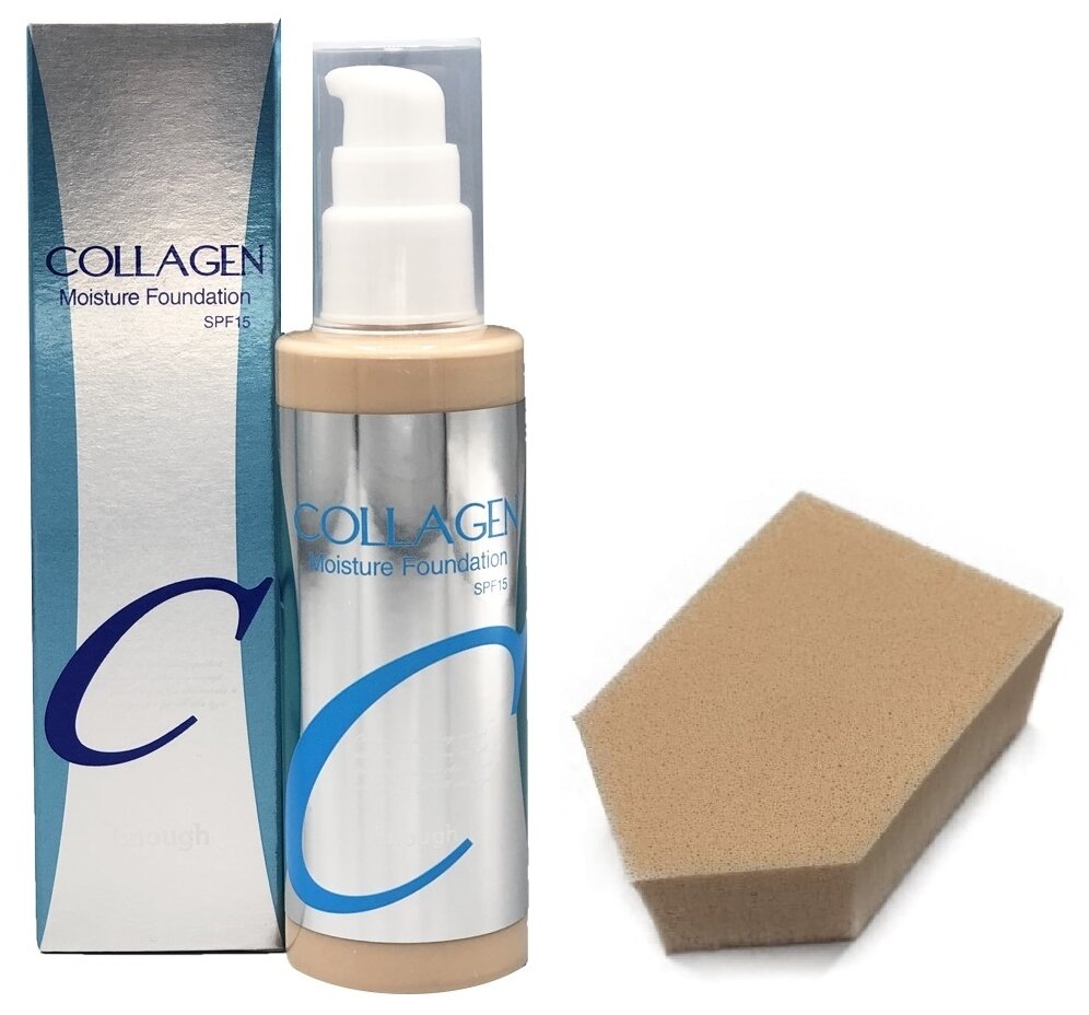 Enough Тональный крем Collagen Moisture Foundation со спонжем, SPF 15, 100 мл, оттенок: 21