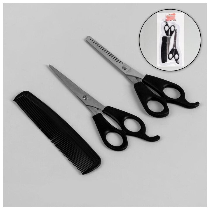 10 цен на Набор парикмахерский 3пр (ножн 15.5см ножн филиров 15.5см расческа комбинир 12.5см) черный 1208350