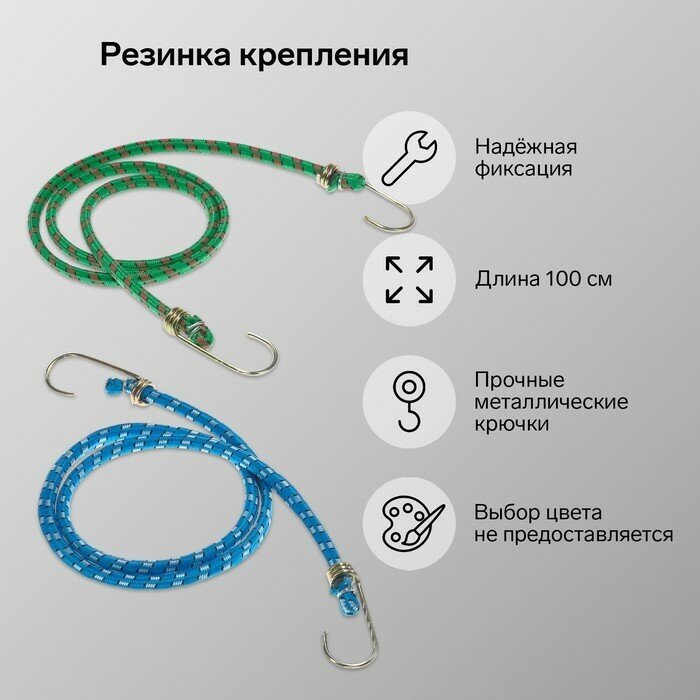 10 цен на Резинка для крепления багажа TORSO, 100 см, d8 мм, металлические крючки, микс, набор 2 шт