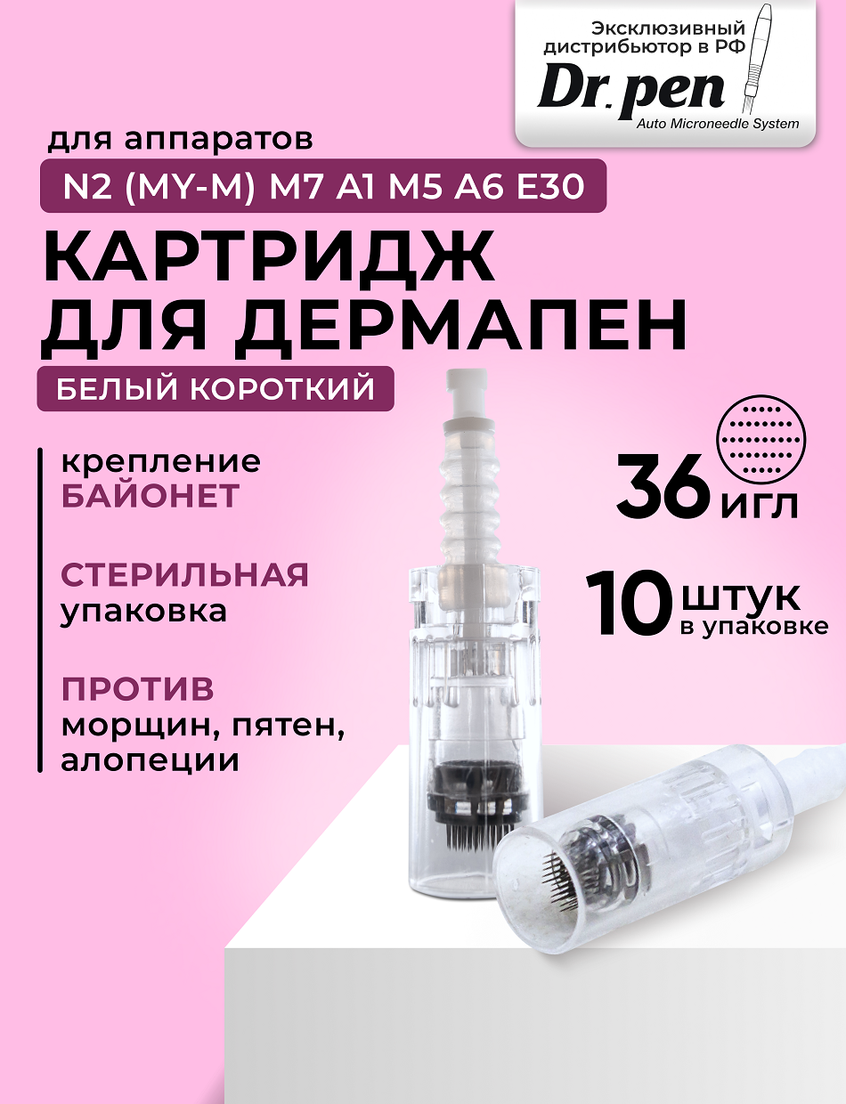 Dr.pen Картридж для дермопен мезопен / на 36 игл / насадка для аппарата dr pen / дермапен / белый байонет, 10 шт информация: