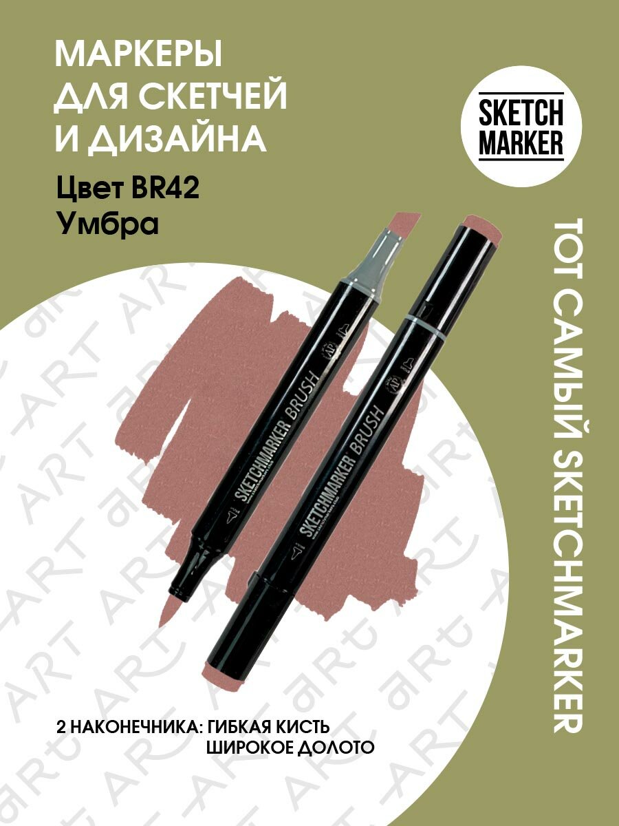 Двусторонний заправляемый маркер SKETCHMARKER Brush Pro на спиртовой основе для скетчинга, цвет: BR42 Умбра информация: