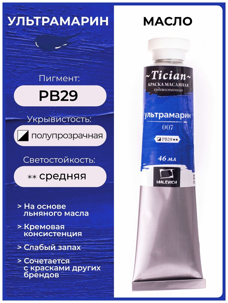 Масляные Малевичъ Масляная краска Tician малевичъ, туба 46мл, 007 Ультрамарин информация: