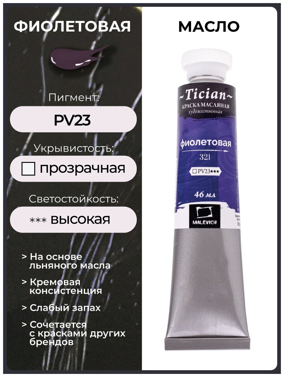 Отзывы на Масляные Малевичъ Масляная краска Tician малевичъ, туба 46мл, 321 Фиолетовая