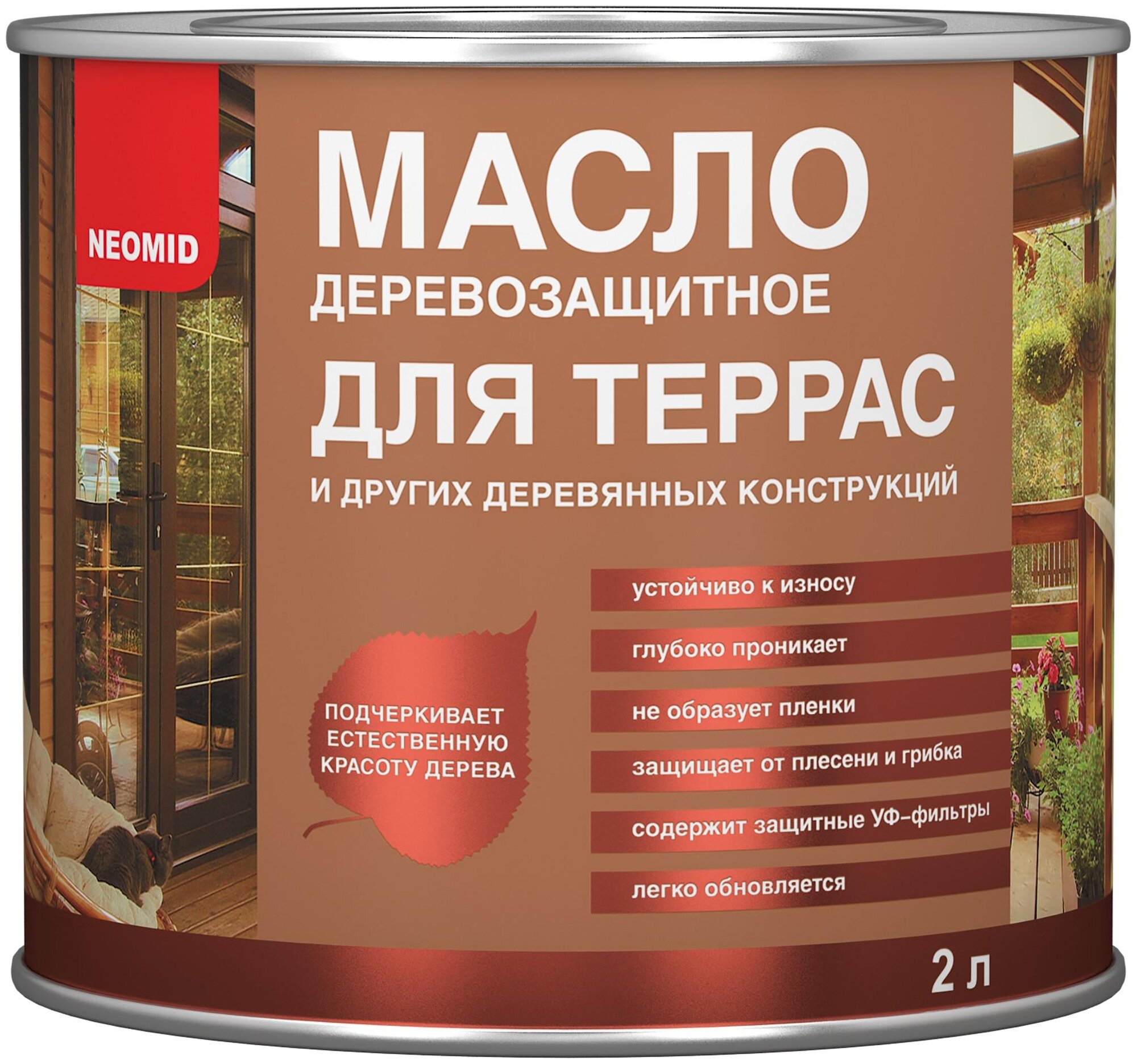 Масло для Террас Neomid 2л Бесцветный Деревозащитное для Внутренних и Наружных Работ / Неомид.