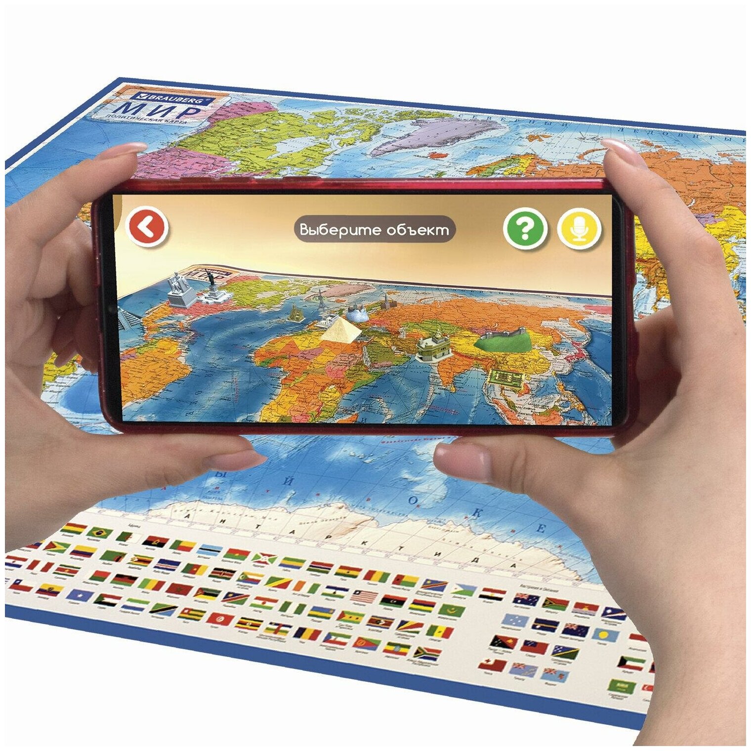 Карта мира политическая Brauberg, 1:32млн., 1010*700мм, настенная, интерактивная, с ламинацией