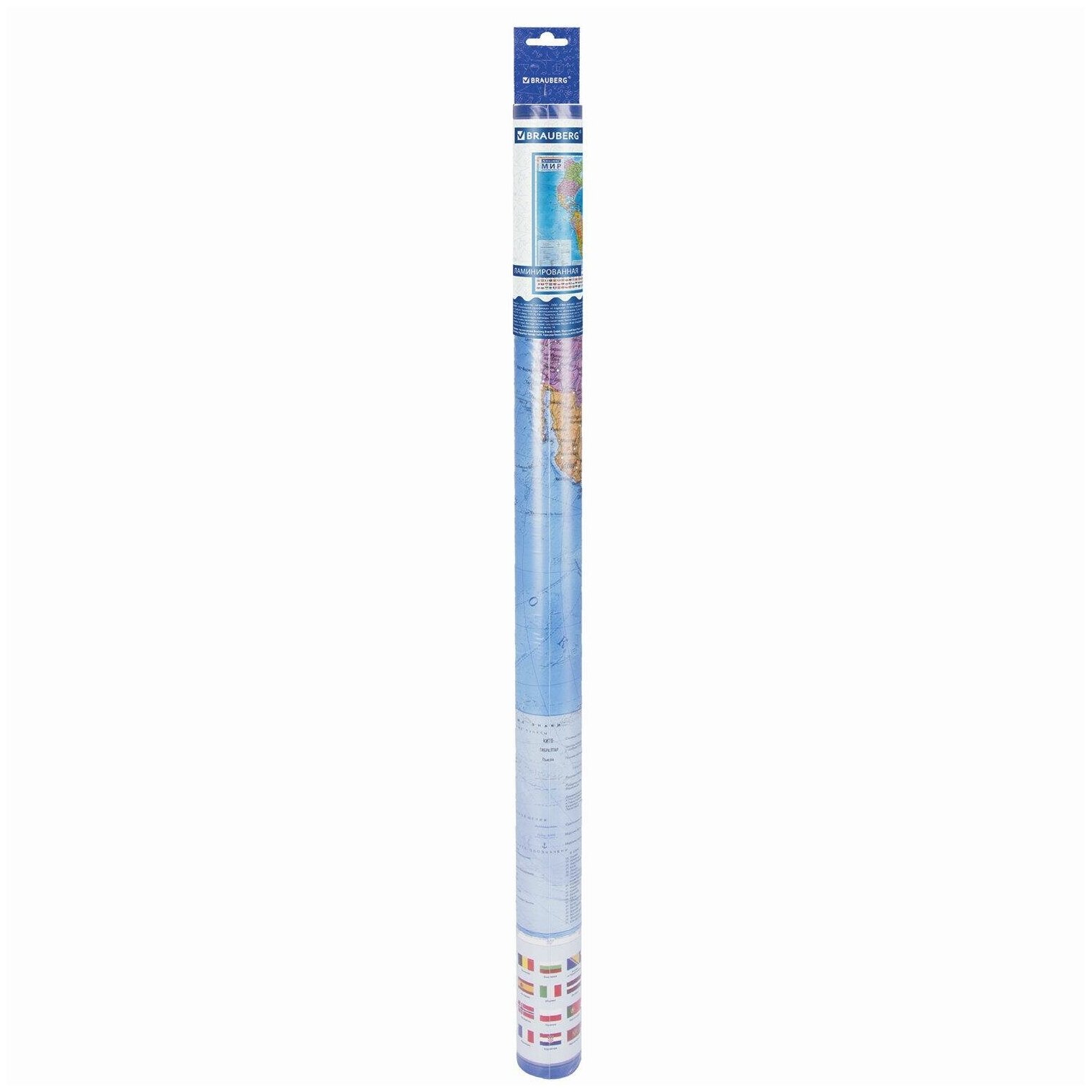 Карта мира Brauberg политическая, 101*70 см, М 1:32, с ламинацией, интерактивная, в тубусе (112382)