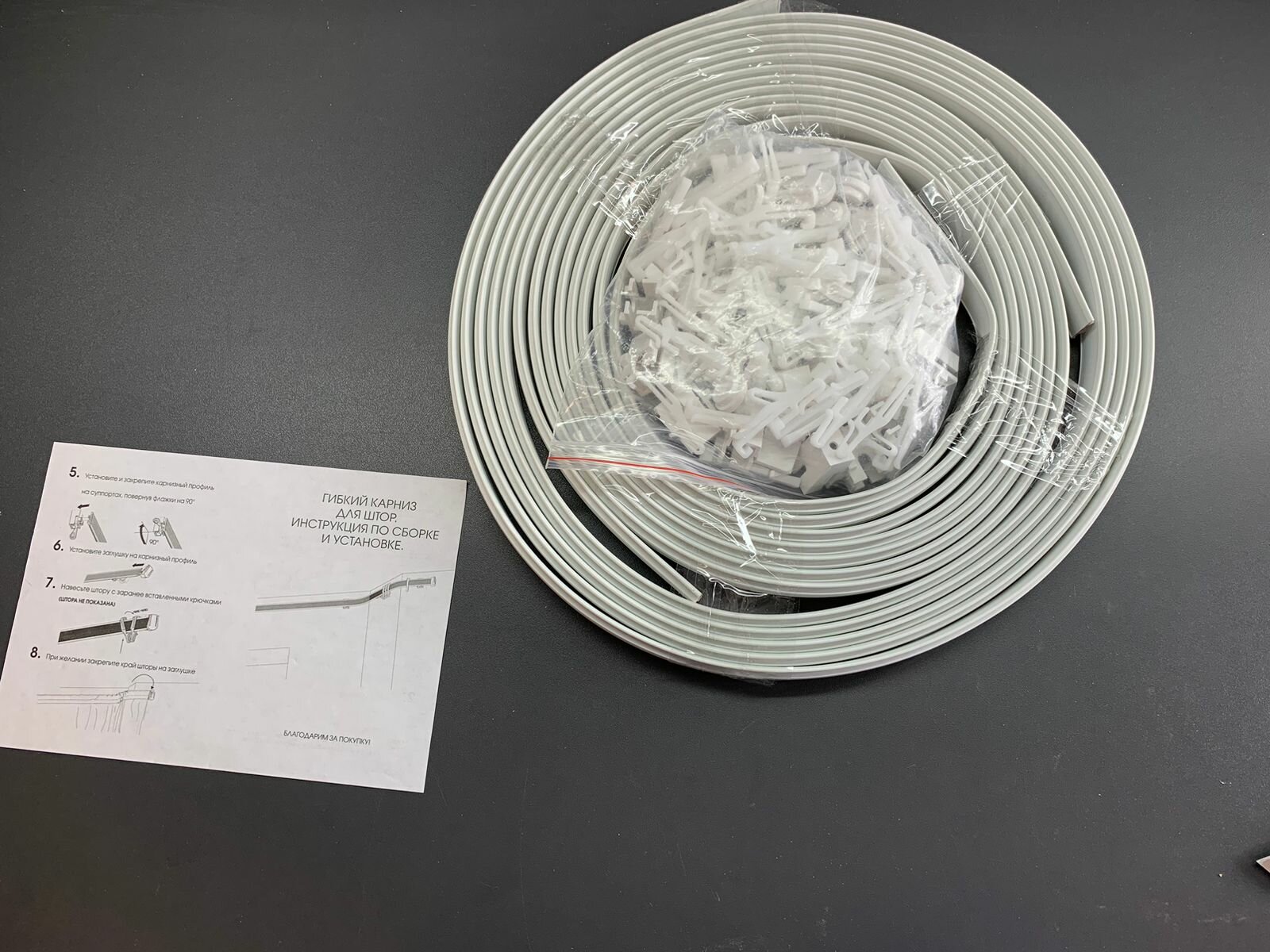 | Комплектация | -гибкий профиль (высота 25мм, ширина 5 мм); -крепление (суппорт); -заглушка.; -крючок |