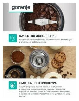 Кофемолка Gorenje Smk150e серебристый . информация: