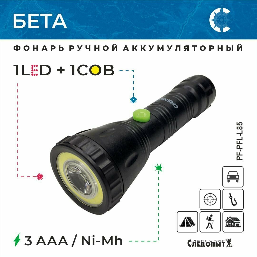 Фонарь Следопыт Сибирский бета, 1 LED + 1 COB, 3хААА информация: