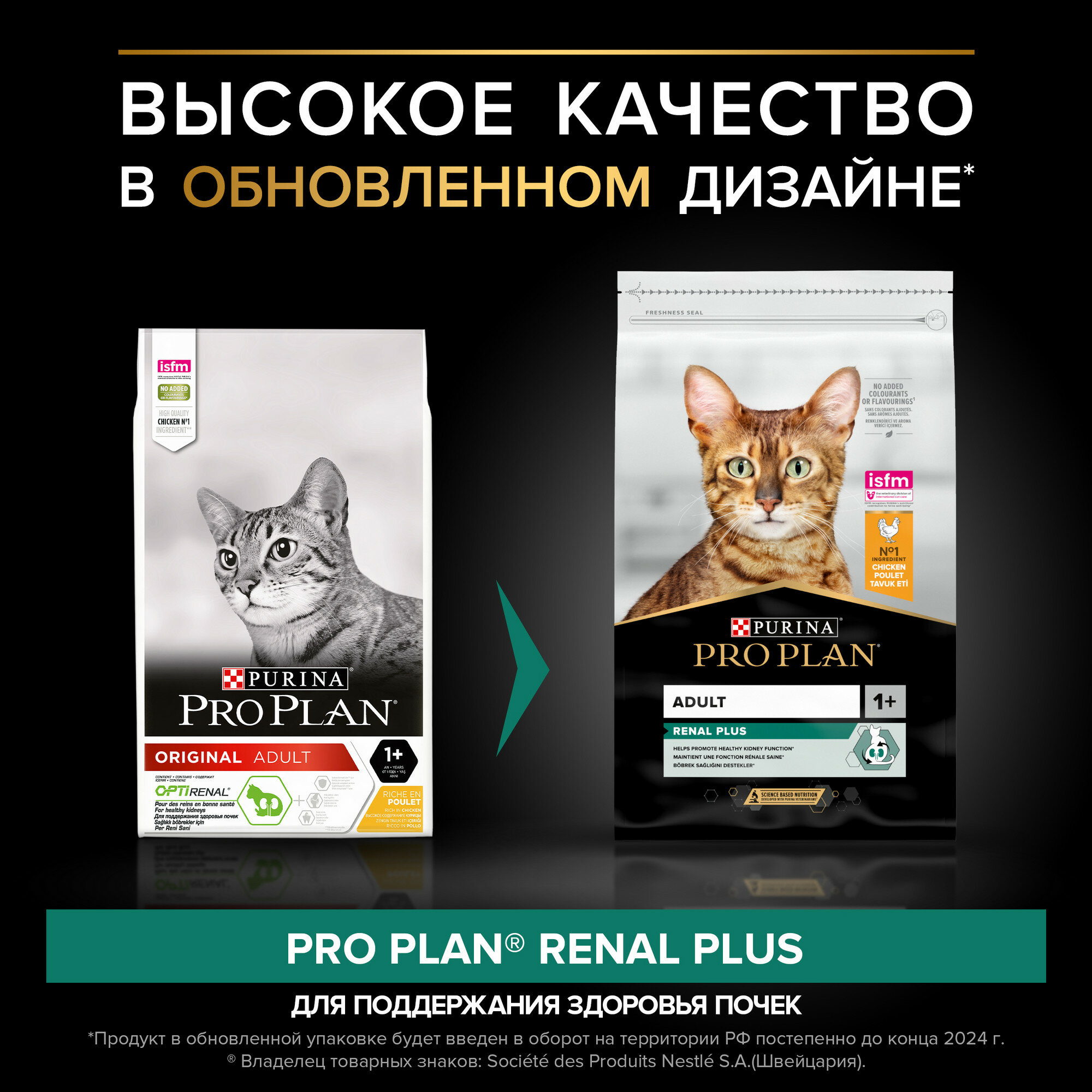 Сухой корм PRO PLAN® для взрослых кошек для поддержания здоровья почек, с высоким содержанием курицы, RENAL PLUS,3 кг