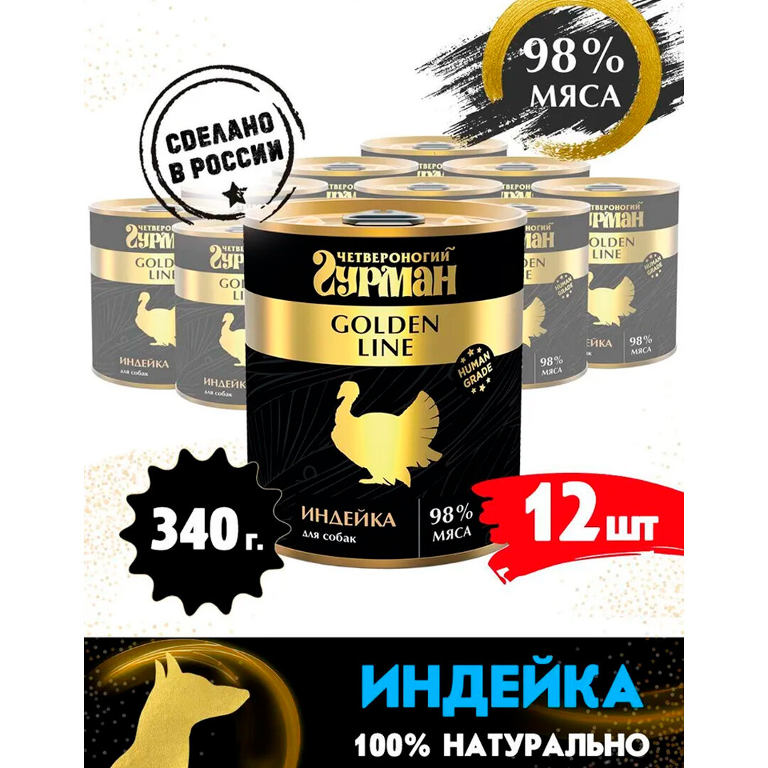 Четвероногий гурман консервы для собак Голден индейка натуральная в желе 340г (12шт) информация: