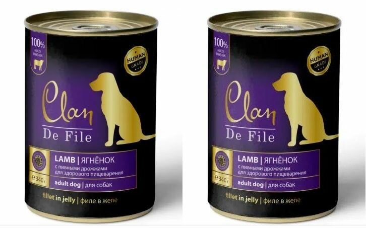 10 цен на Clan De File влажный корм для взрослых собак всех пород, ягненок 340 гр (2 шт)