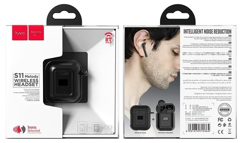 Наушники Hoco S11, беспроводные, вкладыши, BT 5.0, 35/400 мАч, микрофон, индикатор, черные Hoco 7550