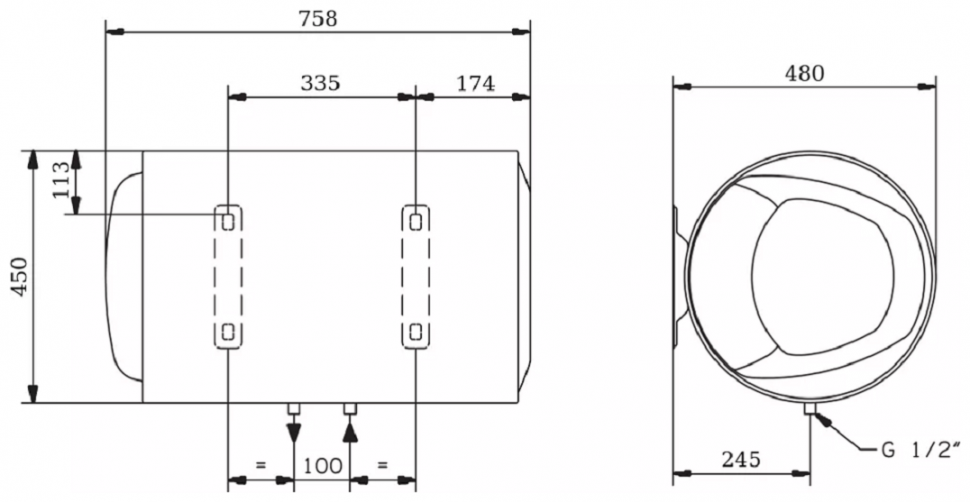 | Дополнительная информация | форма корпуса - цилиндрический стандартный; материал корпуса - металл; материал внутреннего бака - эмалированная сталь; количество внутренних баков 1 шт; количество нагревательных элементов 1 шт; тип нагревательного элемента трубчатый; количество режимов нагрева 1 шт; время нагрева всего объема (ΔT=45°С) 2 ч 37 мин; тепловые потери при T=60°С 1,39 кВт∙ч за 24 ч; минимальное давление воды 0,2 бар; максимальное давление воды 8 бар; длина электрического кабеля 1 м; класс защиты IPX1; расстояние между входом холодной воды и выходом горячей воды 100 мм |