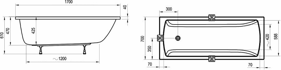 Акриловая ванна Ravak Classic II 1700x700 CC51000000