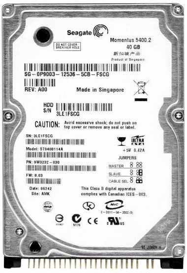 Жесткий диск Seagate ST9408114A 40Gb 5400 IDE 2,5" HDD информация: