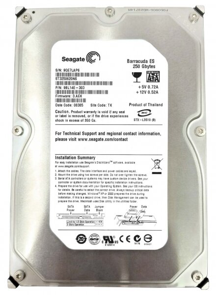 Жесткий диск Seagate ST3250620NS 250Gb SATAII 3,5" HDD информация: