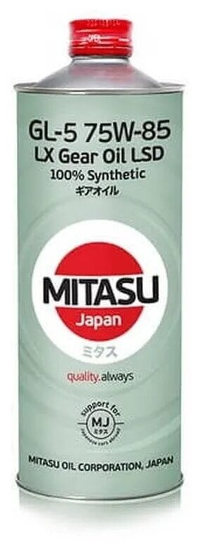 MITASU трансм. LX GEAR OIL 75W85 GL-5 LSD отвечающее стандарту ОЕМ, синтетика 1л (1/20) информация: