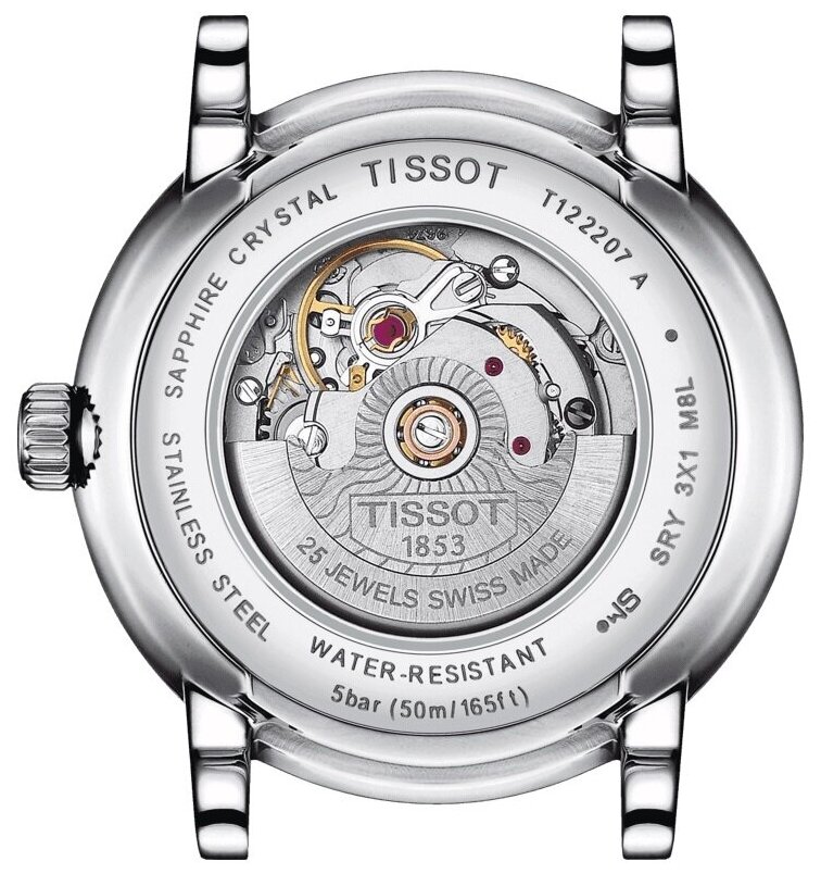 Швейцарские механические часы с автопозаводом Tissot Carson Premium Automatic Lady T122.207.11.051.00 на стальном браслете, с водозащитой 5 бар и международной гарантией от производителя 106 100 ₽