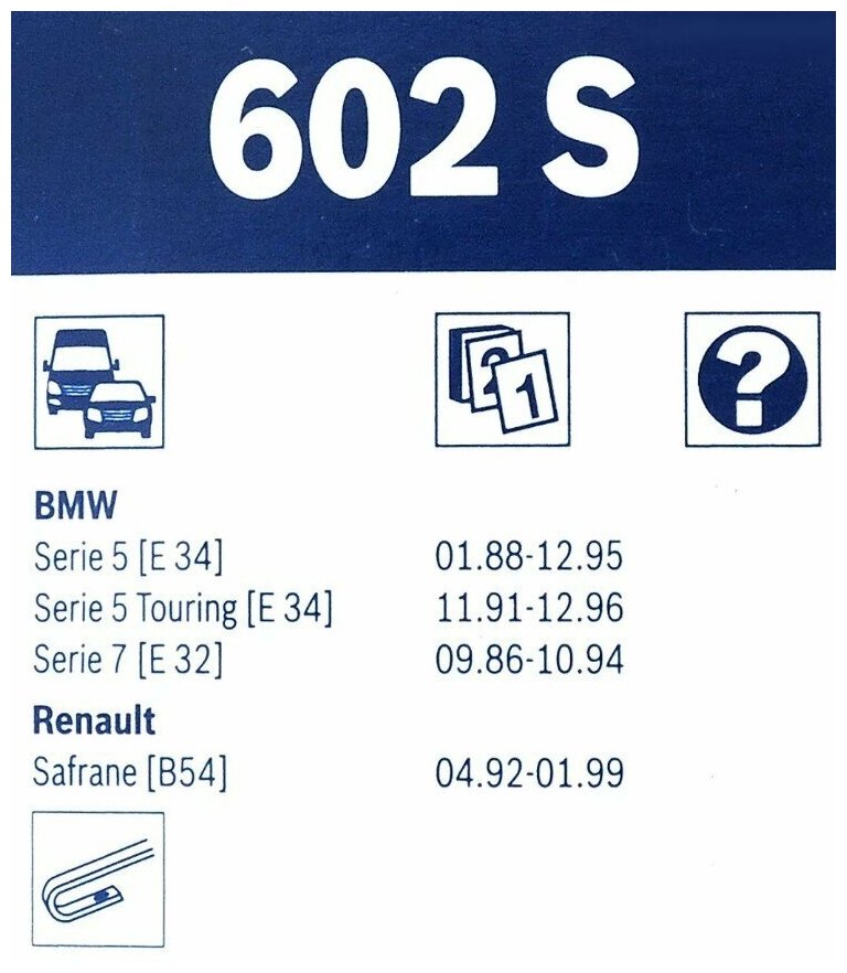 BOSCH 3397118302 Щетки стеклоочистителя BMW: 5 518 i/520 i/520 i 24V/524 td/525 i/525 i 24V/525 i X 24V/525 td/525 tds/530 i/530 i V8/535 i/540 i V8/M5/M5 3.6/M5 3.6 KAT/M5 3.8 87-95, 5 1шт 4 190 ₽