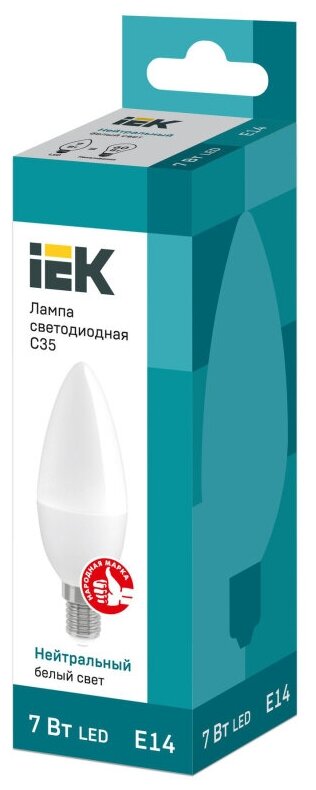Лампа светодиодная ECO C35 7Вт свеча 4000К E14 230В, IEK LLE-C35-7-230-40-E14 (10 шт.) информация: