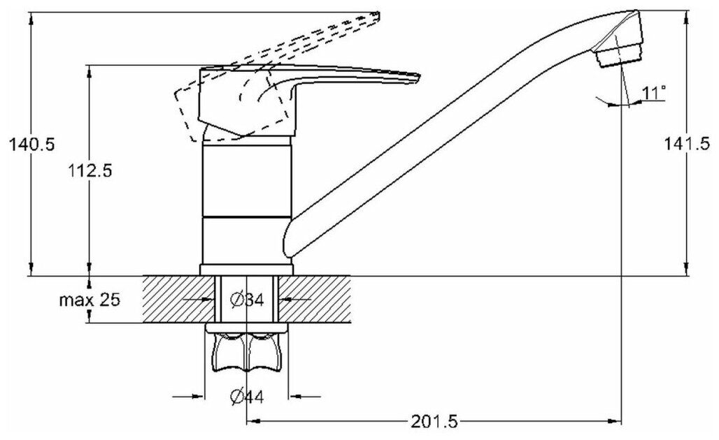 | Длина излива | 201 мм |