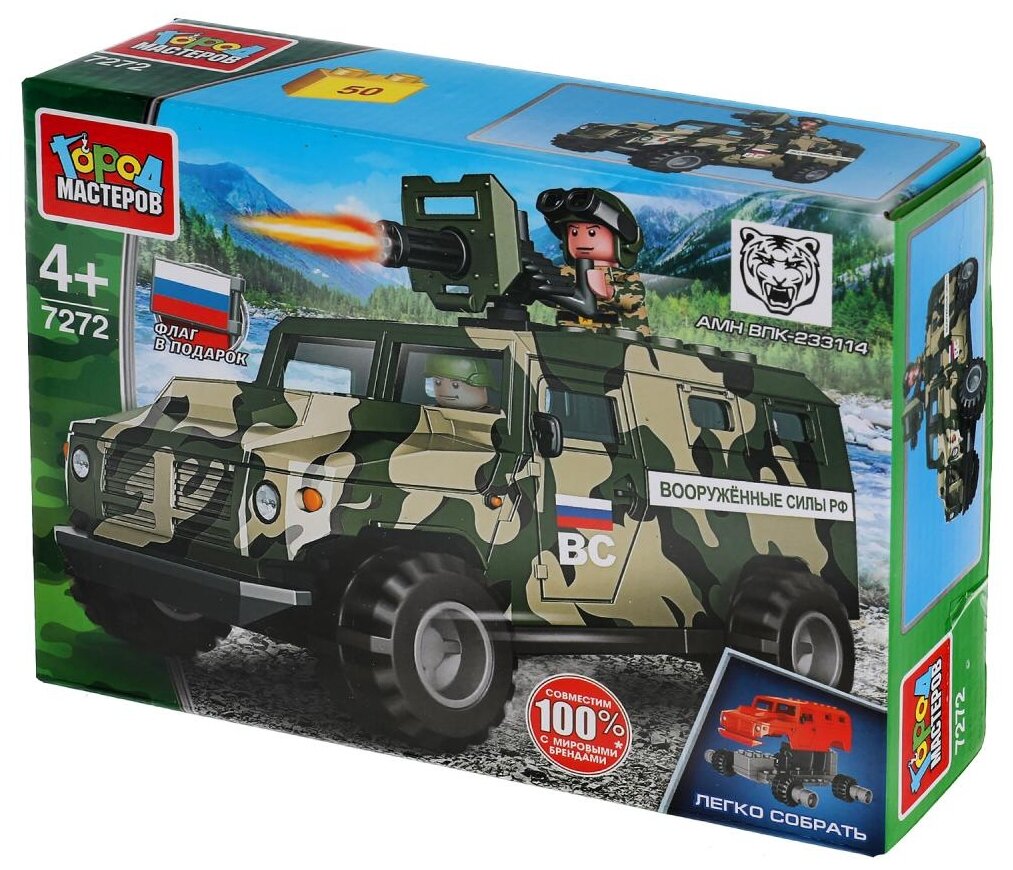Конструктор город мастеров 7272 Военная бронемашина Тигр, 50 деталей