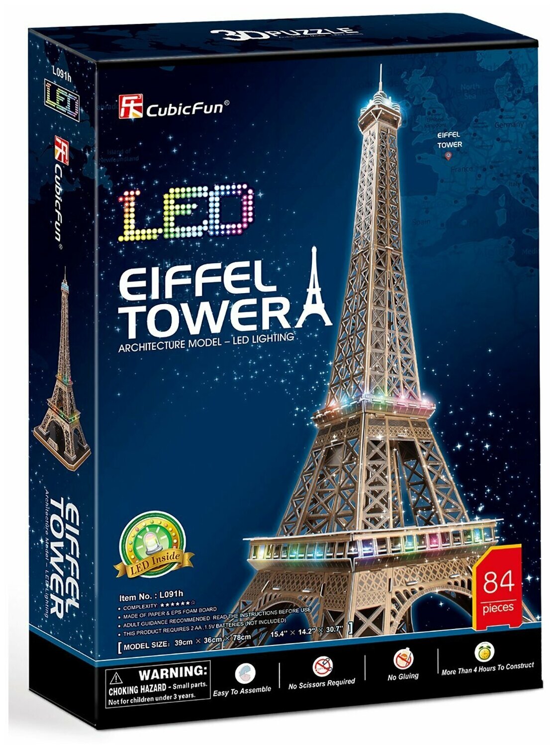 3D пазл CubicFun Эйфелева башня с LED-подсветкой, 84 детали