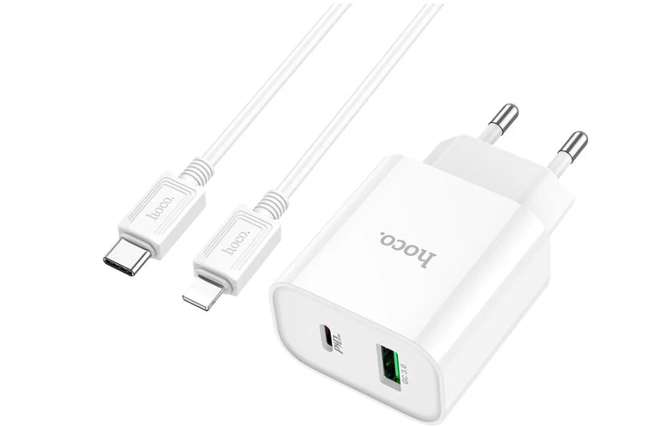 Зарядное устройство Hoco C80A Rapido 1xUSB 1xUSB Type-C 3А PD20W QC3.0 USB Type-C + Cable Lightning 1m White 0L-00050625 880 ₽