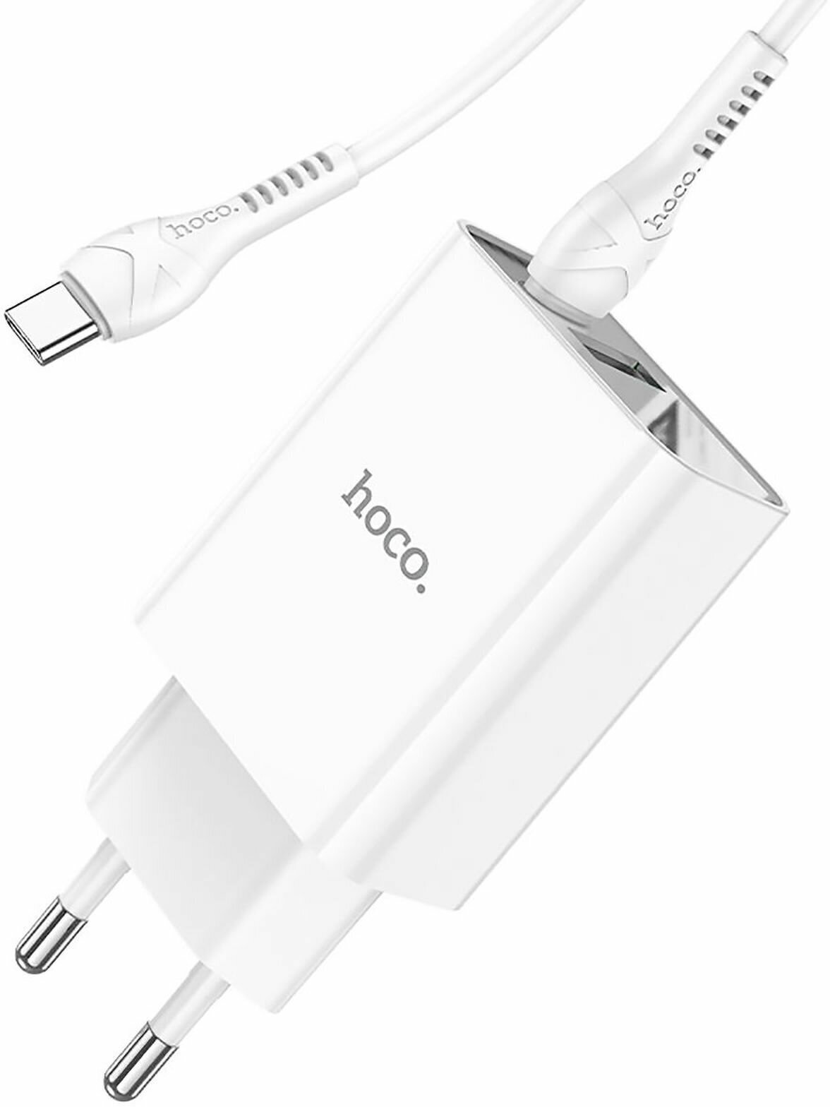 Сетевой адаптер - Hoco C100A, USB Type-C, 20W, с проводом и быстрой зарядкой, белый, 1 шт.
