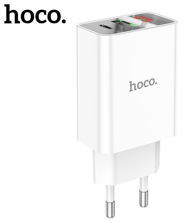 Сетевое зарядное устройство Hoco C100A, 1 USB, 1 Type-C, 18 Вт, 3 А, дисплей, PD + QC, белое