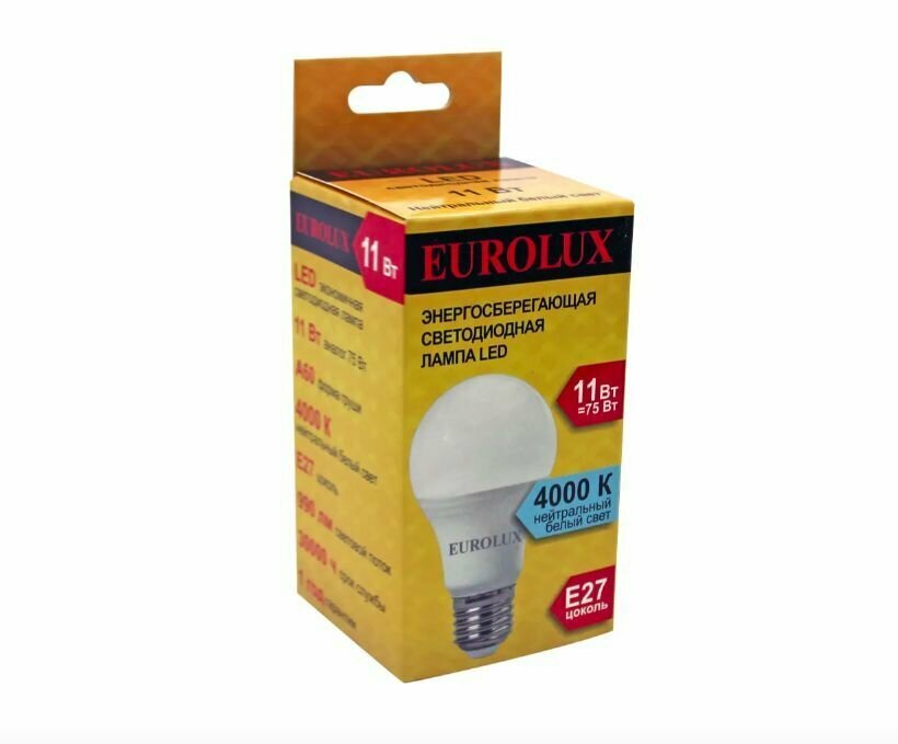 EUROLUX Лампа светодиодная EUROLUX LL-E-A60-11W-230-4K-E27, 76/2/16