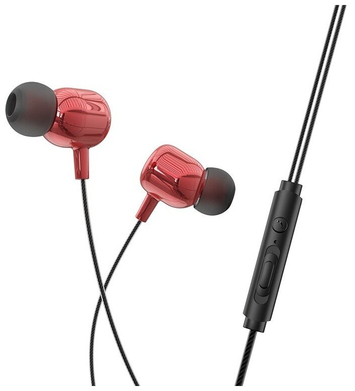 10 цен на Наушники вакуумные для AUX разъема с микрофоном и регулятором громкости длина 1.2м Hoco M87 Red Flame