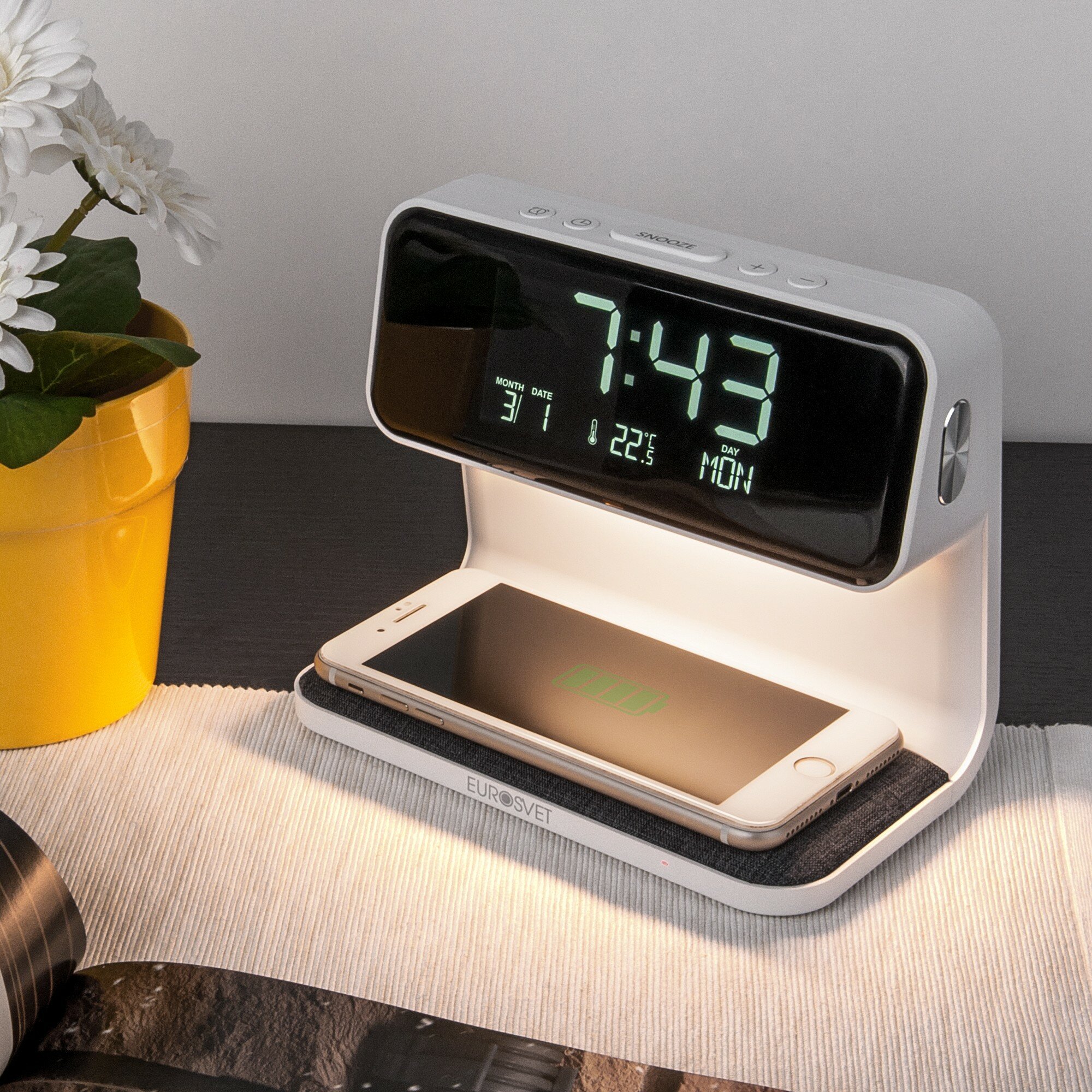 Светодиодная настольная лампа Eurosvet с беспроводной зарядкой и будильником 80506/1 белый
