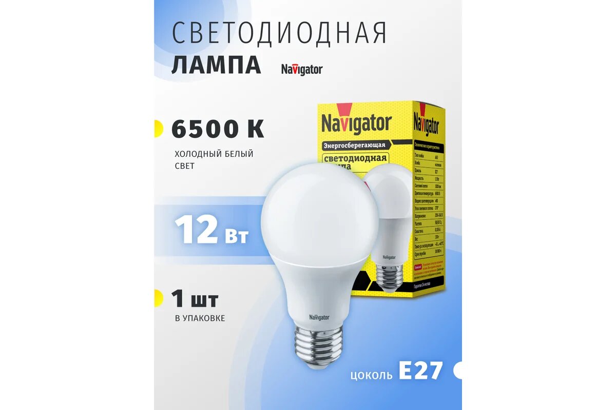 Лампа Navigator NLL-A60-12-230-6.5K-E27 61238 информация: