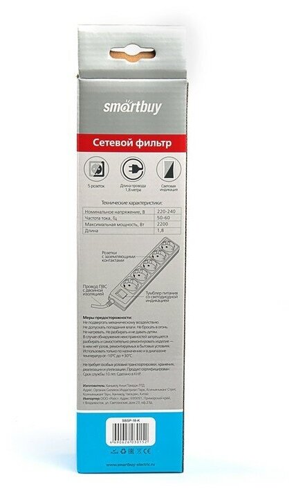 Сетевой фильтр Smartbuy (sbsp-18-k) (1.8м) (5 розеток)