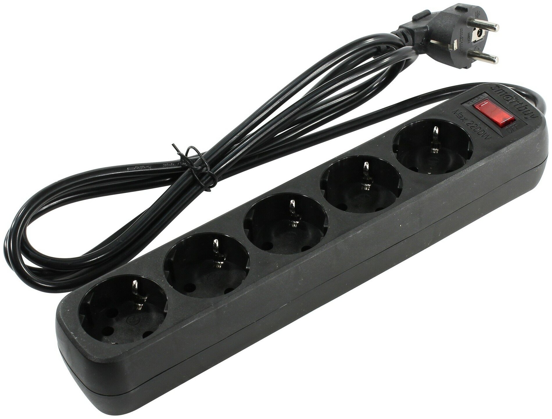 Удлинитель с функцией сетевого фильтра, 10А, 2 200 Вт, 5 розеток, длина 1,8 м, черный, Smartbuy