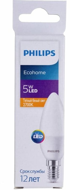 Лампа светодиодная Ecohome LED Candle 5Вт 500лм E14 827 B36, PHILIPS 929002968437 (1 шт.)