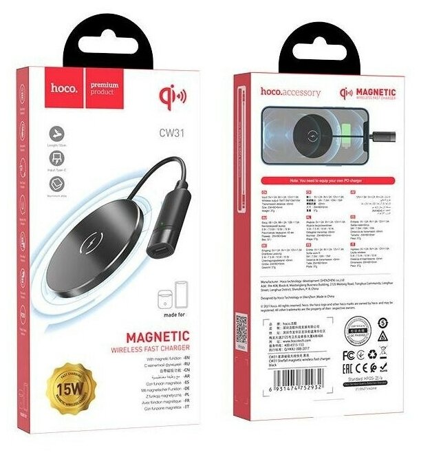 Беспроводное зарядное устройство Hoco CW31 15W/MagSafe (7.5W) магнитное, черное информация: