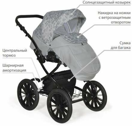 Коляска-люлька универсальная 2в1 Indigo Indigo прогулочная всесезонная с большими колесами (02) светло-серый